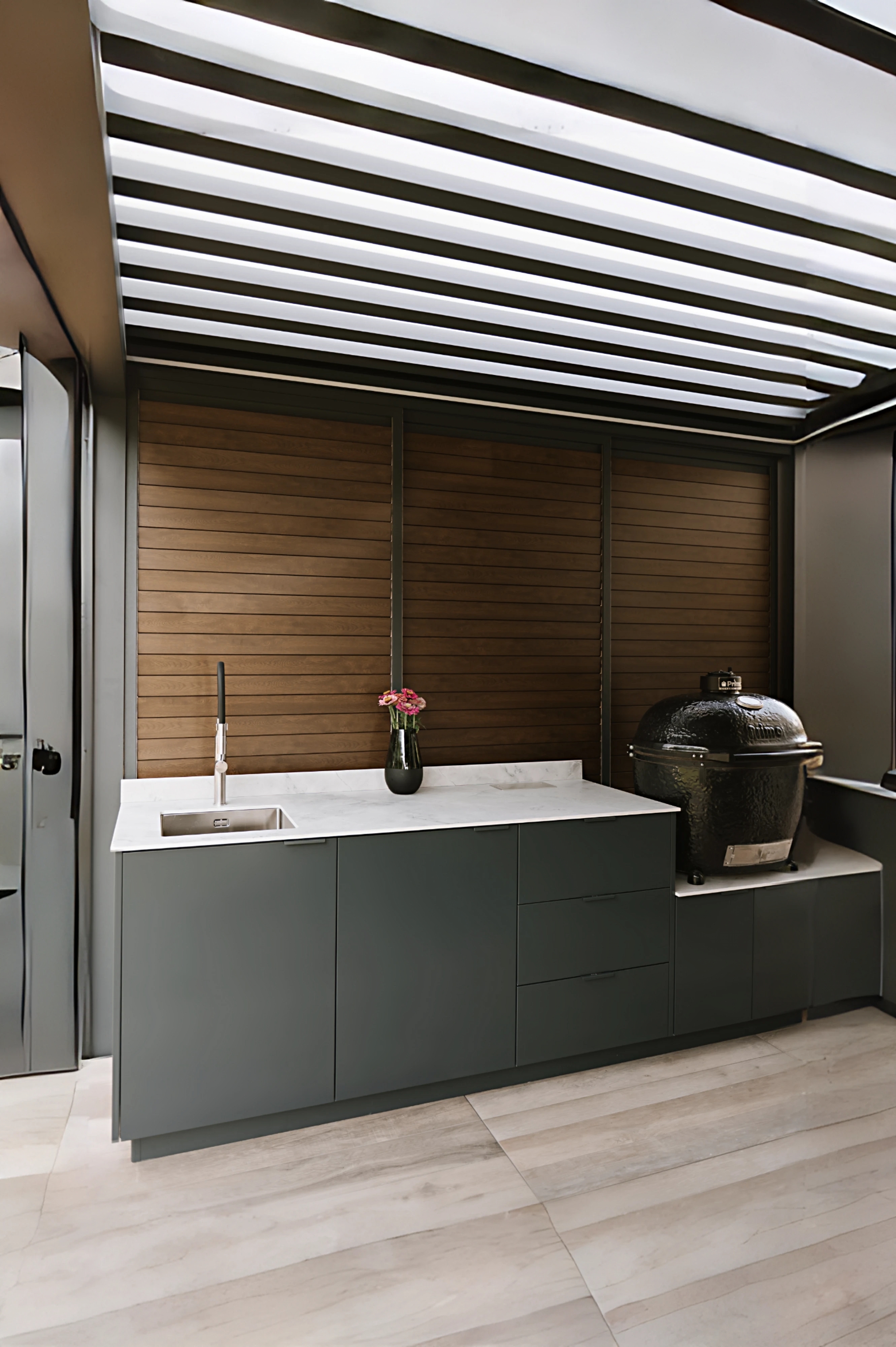 Nudimo celovito storitev: svetovanje, 3D načrtovanje, izdelavo, dostavo in montažo letne kuhinje po meri. Vse na enem mestu, brez skrbi in z enim kontaktnim partnerjem.